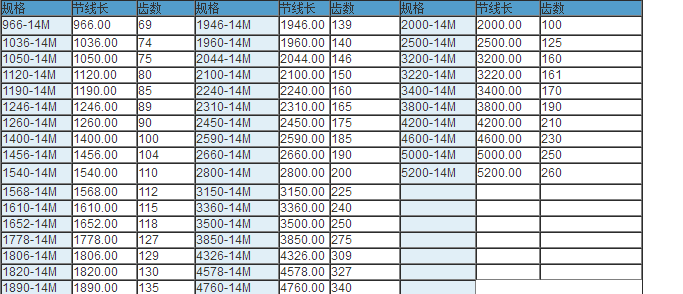 同步帶技術參數